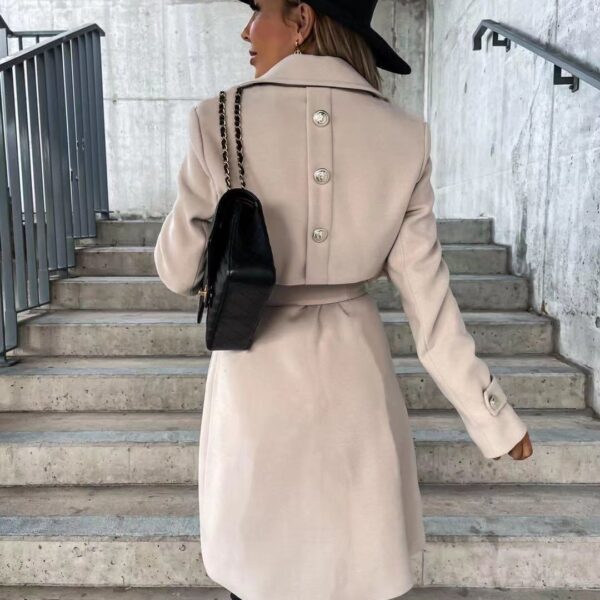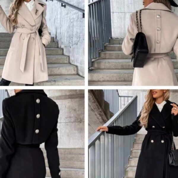 Stunning coat with gold button details at the front and back belt at the waist and knee length