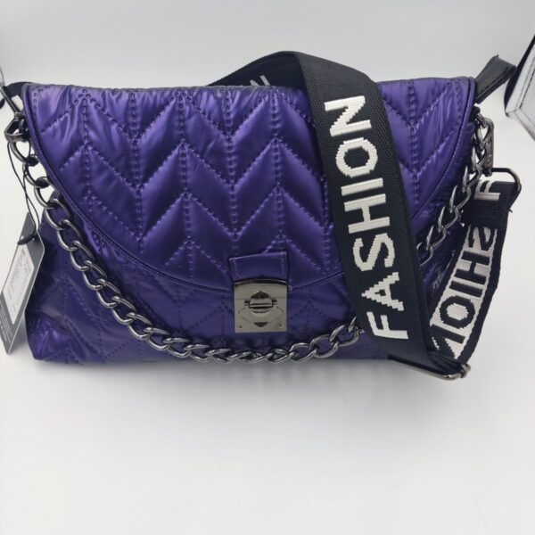 Τσάντα σε εκπληκτικό μωβ χρώμα με κράτημα αλυσίδα αλλά και υφασμάτινο ιμάντα… Διαστάσεις ύψος 22π πλάτος 31π φάρδος 5π