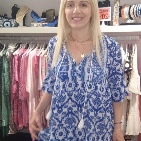 ΕΚΠΛΗΚΤΙΚΟ ΑΕΡΙΝΟ ΔΡΟΣΕΡΟ ΦΟΡΕΜΑ ΣΕ ΕΚΠΛΗΚΤΙΚΟ ΣΥΝΔΙΑΣΜΟ ΧΡΩΜΑΤΩΝ ΜΠΛΕ ΡΟΥΑ ΛΕΥΚΟ ΑΝΕΤΟ ΚΑΛΥΠΤΕΙ ΕΩΣ XLARGE….