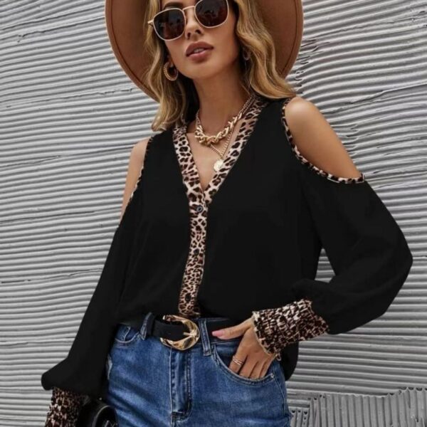 Ιδιαίτερη μπλούζα με έξω ώμους και λεπτομέρειες λεοπαρ …για εντυπωσιακές εμφανίσεις.